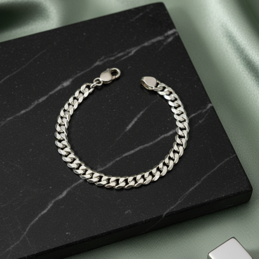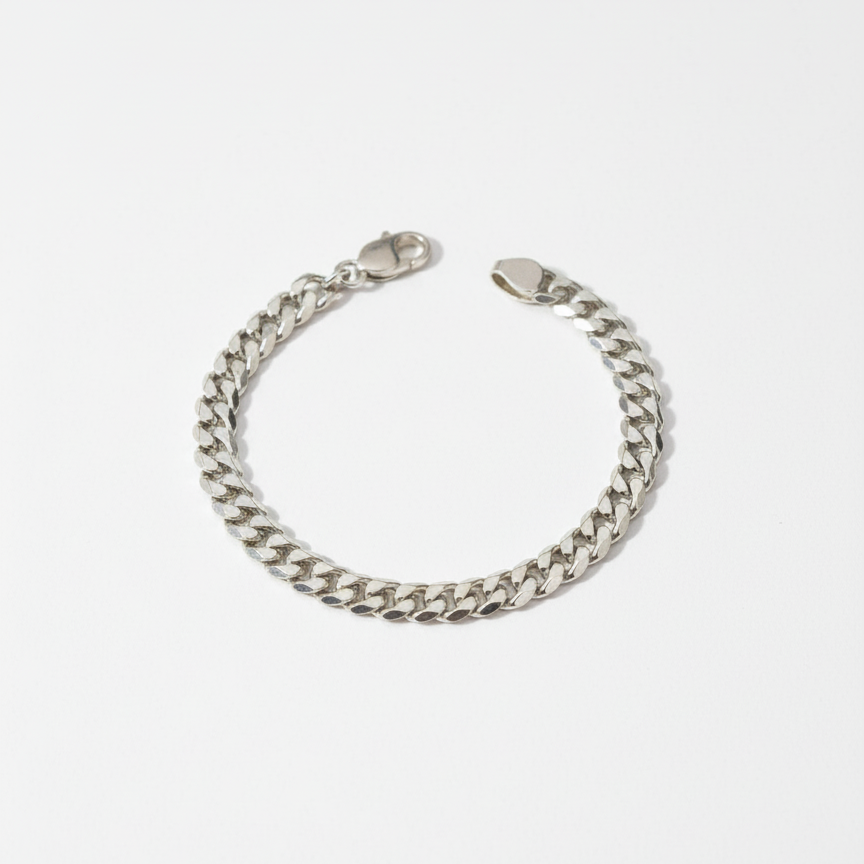 A must-have for every modern man's collection. Crafted from polished sterling silver, this classic curb chain bracelet offers a bold yet refined look. Its weighty feel and secure clasp ensure comfort and durability for everyday wear. The perfect piece to wear solo or layer with a watch.