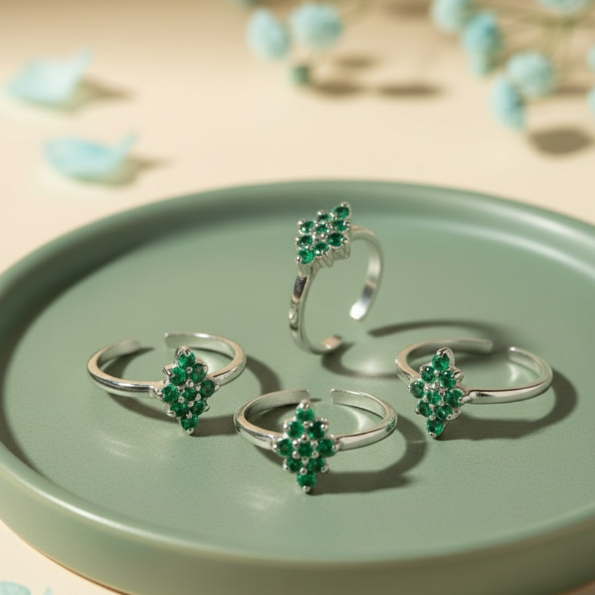 Emerald Green Cubic Zirconia Flower Adjustable Toe Ring (Set of 4)